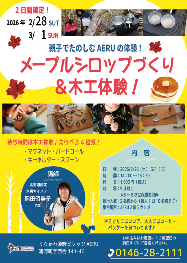 AERUで「メープルシロップづくり&木工体験」が開催されます。
